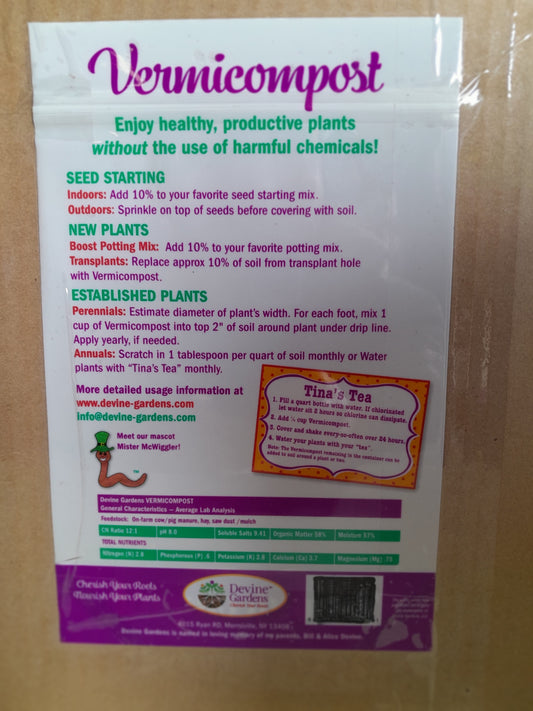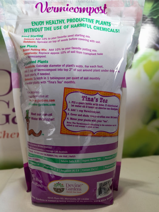 DEVINE GARDENS WORM CASTINGS FOR BIGGER, HEALTHIER, MORE PRODUCTIVE PLANTS, NATURALLY