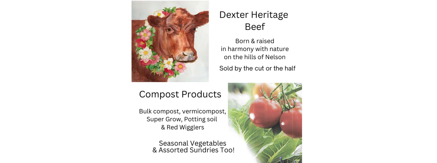 We cherish our cows and we couldn't make quality, consistent worm castings without them. Our cow's manure and bedding feed the worms. The cow's feed the soil while on pasture. Their beef provides nutritious, tasty food for our customers. Try some soon - it's delicious!
